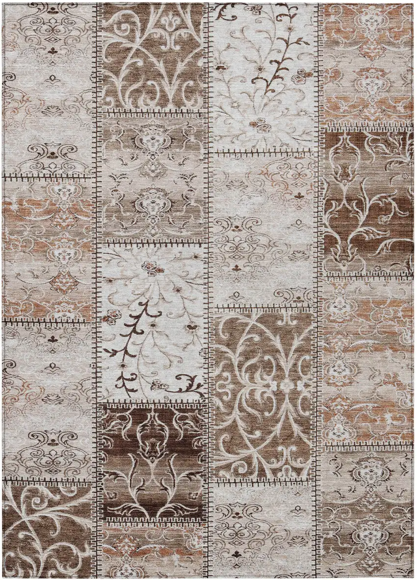 3' X 5' Taupe and Ivory Patchwork Washable Non Skid Indoor Outdoor Area Rug