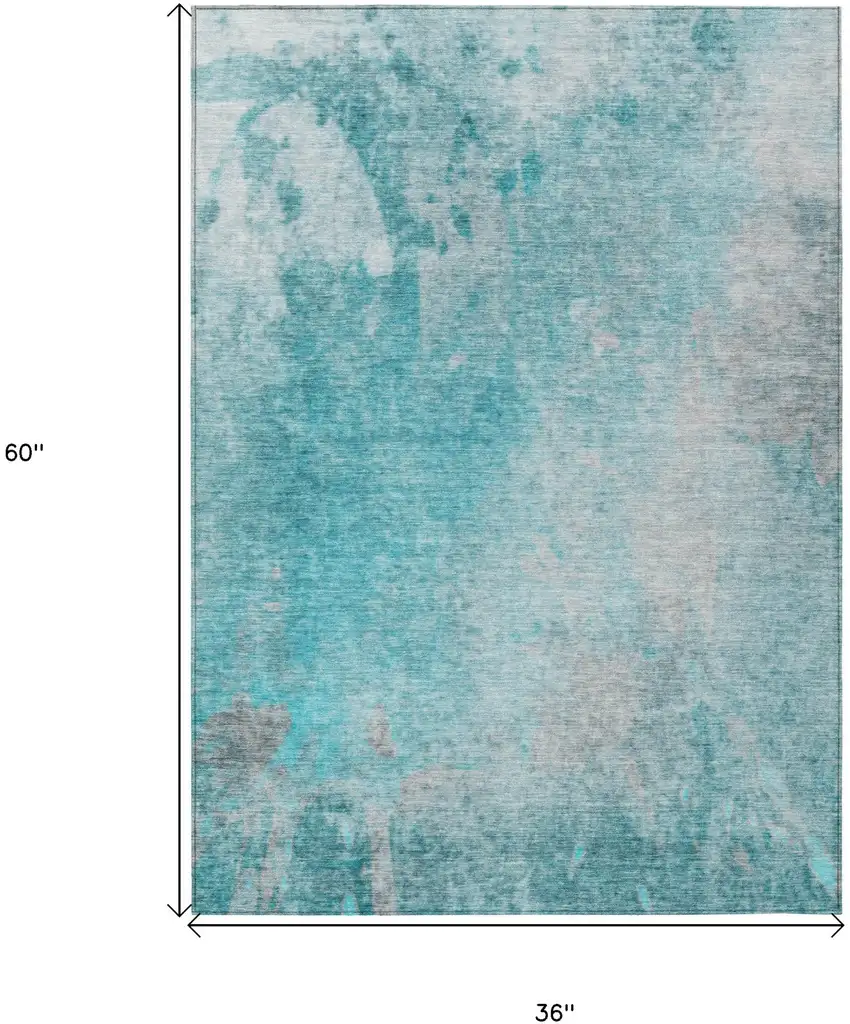3' X 5' Teal Abstract Washable Non Skid Indoor Outdoor Area Rug