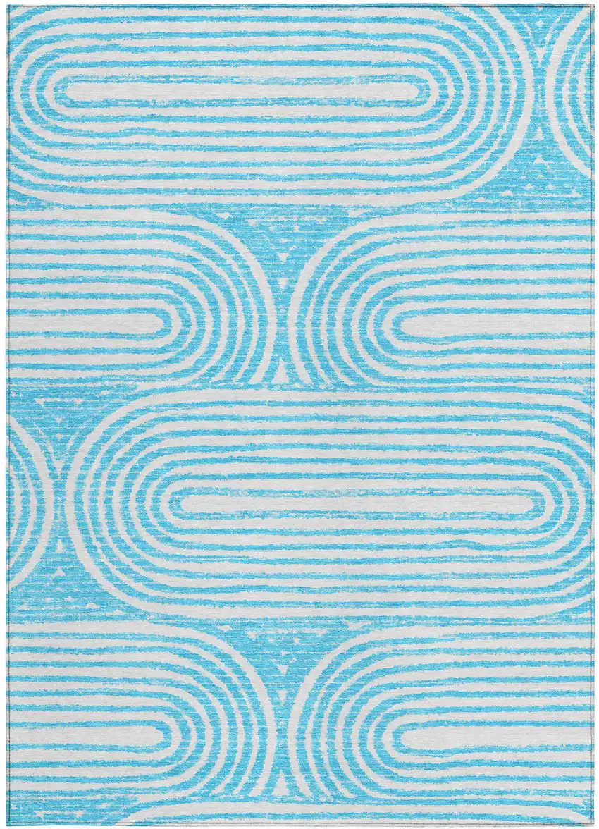 3' X 5' Teal Abstract Washable Non Skid Indoor Outdoor Area Rug