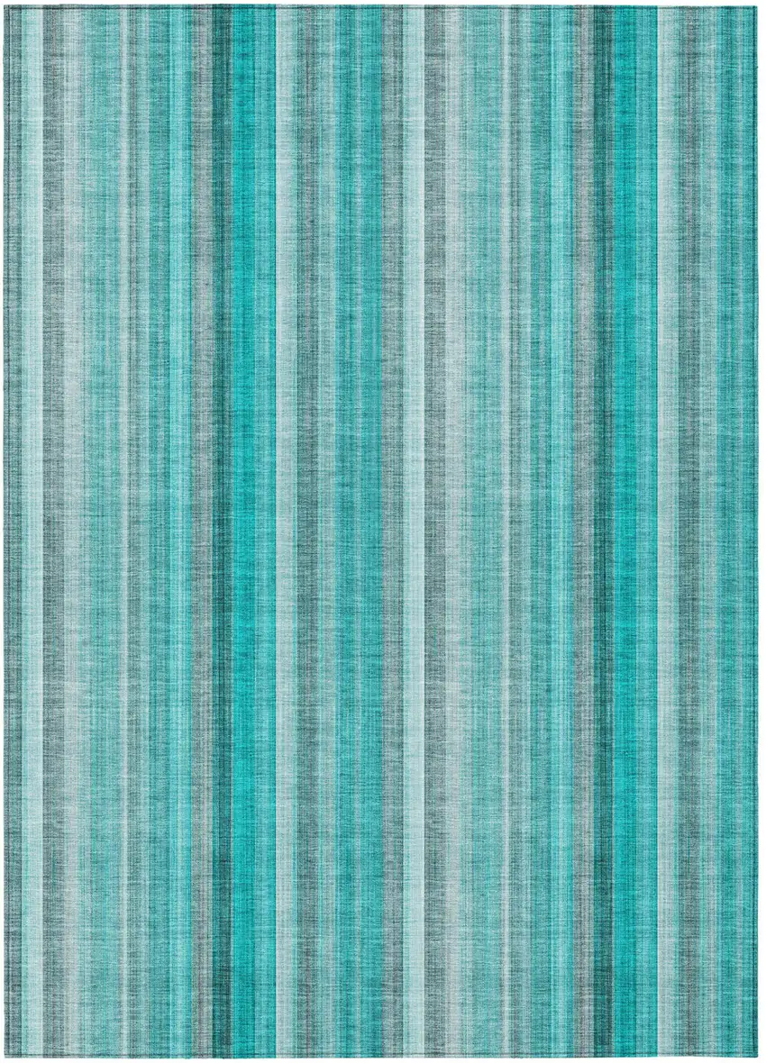 Set an inviting tone in your space with this 3-foot x 5-foot teal and gray striped washable stain resistant non skid indoor outdoor area rug. This rectangle shaped rug features a striped design in teal and gray to give it visual interest. A classic shape marries with good looking design for your space ideal for spaces with kids and pets, this rug is stain resistant to help repel stains and spilled liquids. Area rugs help to give warmth and sense of home to your space. 36-inch H x 60-inch W x 0.19-inch D