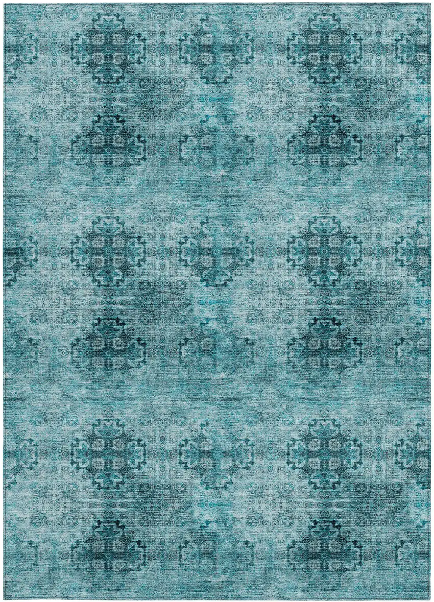 3' X 5' Teal Floral Medallion Washable Non Skid Indoor Outdoor Area Rug