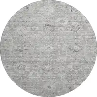 4' Blue and Yellow Floral Distressed Non Skid Round Rug
