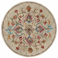 Experience the Difference with our 4' Round Beige Floral Medallion Area Rug