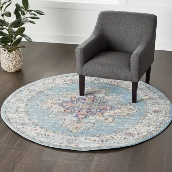 Order your 4' Round Light Blue Distressed Medallion Area Rug today and create a sanctuary of serenity and style that captures the hearts of all who enter.