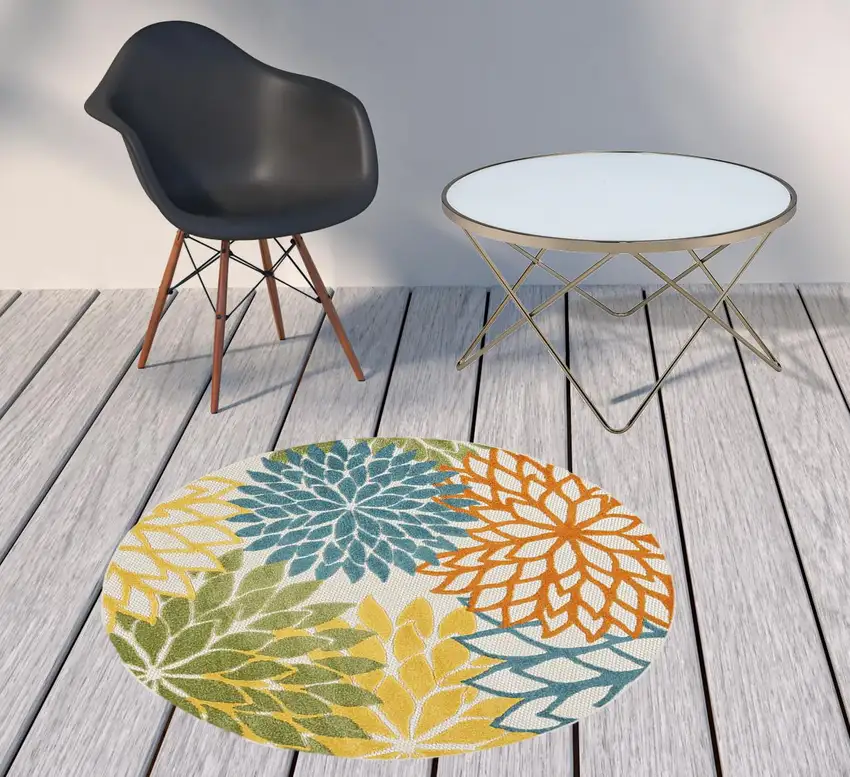 Introducing our stunning 4 x 4 Turquoise Round Floral Non-Skid Indoor/Outdoor Area Rug, the ideal addition to elevate the ambiance of any room. This exquisite rug combines style, durability, and functionality, making it a must-have for every home. Whether you're looking to create a cozy reading nook, update your patio décor, or add a touch of elegance to your living room, this rug is the perfect choice.