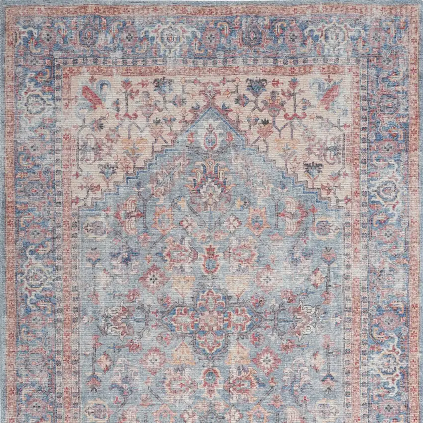 Blue Oriental Power Loom Distressed Washable Area Rug