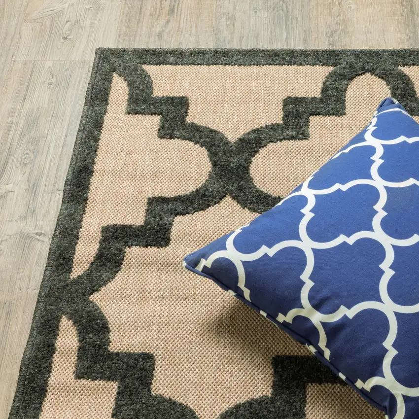 4' X 6' Sand Geometric Stain Resistant Indoor Outdoor Area Rug