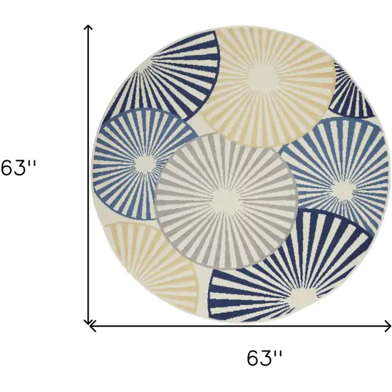 5' Blue and Beige Round Geometric Power Loom Area Rug