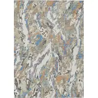 5' Cream And Yellow Square Medallion Indoor Outdoor Area Rug