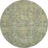 5' Gray and Beige Round Abstract Non Skid Area Rug