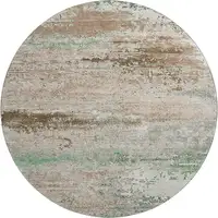 5' Gray and Yellow Round Abstract Non Skid Area Rug