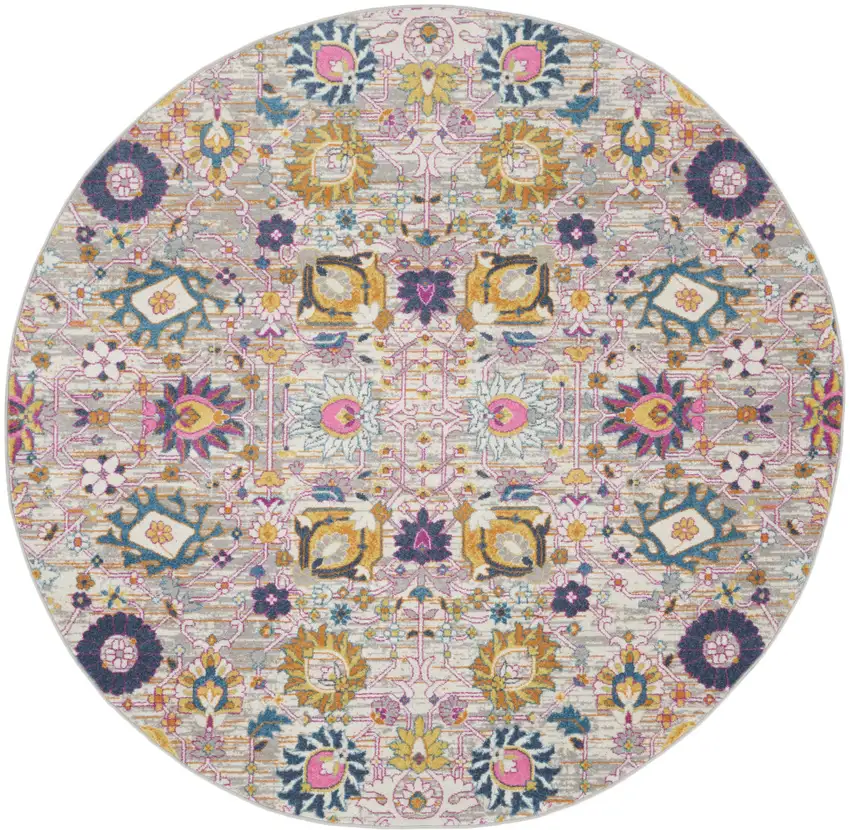 5' Gray Round Floral Power Loom Area Rug