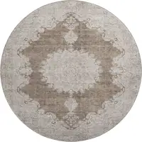 Set an inviting tone in your space with this 5-foot ivory and gray abstract non skid round rug. Ideal for spaces with kids and pets, this rug is stain resistant to help repel dirt and spilled liquids. Built to last, this rug crafted from polypropylene fibers is known for its durability and long lasting appeal. Rugs are a great way to showcase your style, hide imperfections, warm your home and reduce noise. This geometric round shaped rug features a abstract pattern in ivory that combines a good looking print with a unique and updated shape. The mix of shape, color, and design gives this rug refreshing visual interest. This larger sized, modern styled rug is ready to create a focal point or statement piece in your room. 63-inch h x 63-inch w x 0.25-inch d