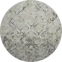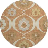 5' Ivory Navy Blue And Light Blue Floral Round Rug
