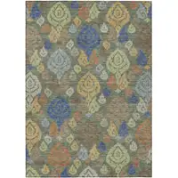 Add some artistry to your room with this 5-foot red and taupe square medallion indoor outdoor area rug. This geometric square shaped rug features a medallion pattern in red and taupe that combines a good looking print with a unique and updated shape. The mix of shape, color, and design gives this rug refreshing visual interest. Makes a great way to dress up your patio, porch, or poolside, but also works well as a durable and easy to maintain option in the kitchen, family room, or mudroom. 63.00-inch h x 63.00-inch w x 0.19-inch d.
