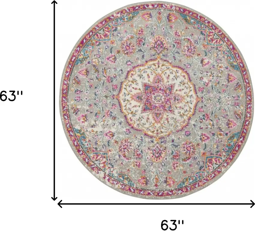 Add a pop of color and a touch of style to your space with our medallion area rug. The gray and pink design perfectly complements modern, minimalist, or bohemian décor styles.