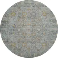5' Turquoise and Cream Botanical Leaves Round Rug