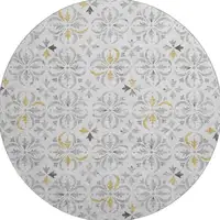 Ivory Round Abstract Power Loom Non Skid Area Rug