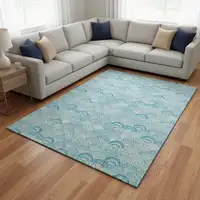 The light blue color palette effortlessly complements existing décor and furniture, seamlessly blending into any interior style. Whether your home features a modern, contemporary, or traditional theme, this rug's timeless appeal will enhance the overall aesthetic, transforming your space into a haven of tranquility and style.