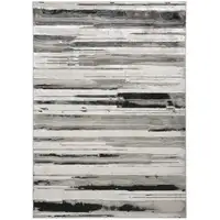 Enhance your living area with this striking rug that intricately weaves together tones of beige, black, and gray. Measuring 5x8 feet, this floor covering is the perfect blend of luxury and practicality, making it ideal for high traffic areas.