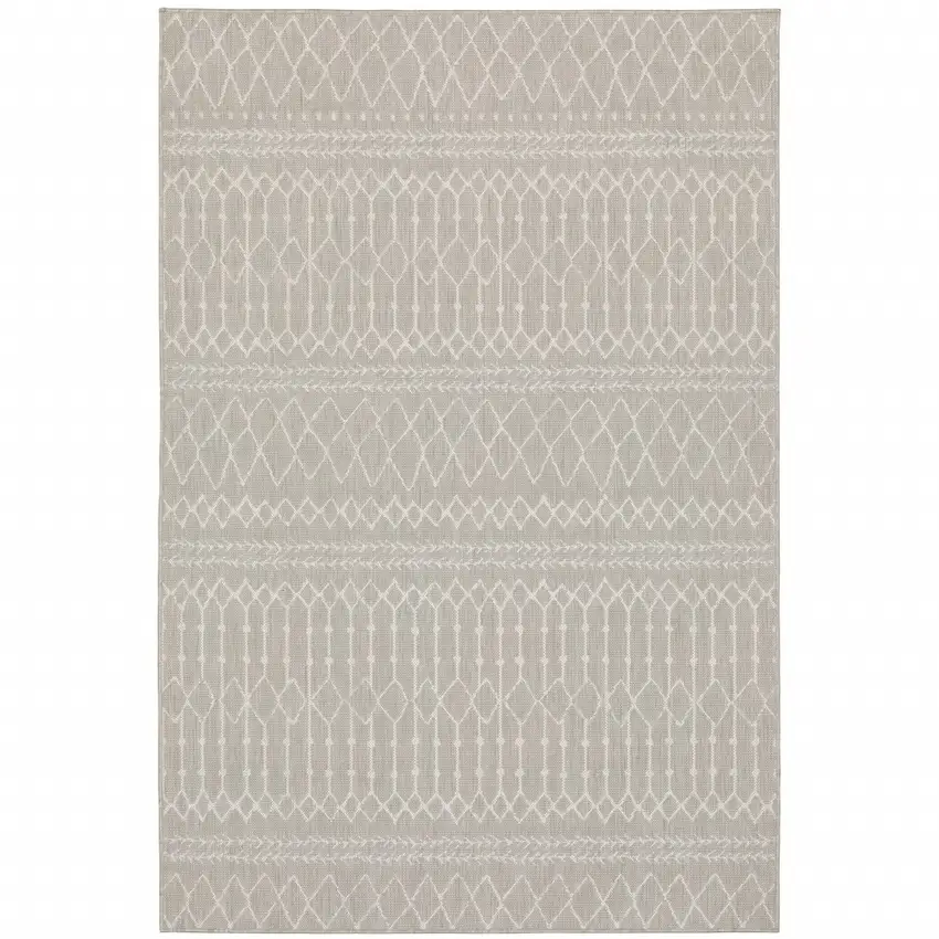 Indulge in the luxury of our 5x7 Gray and Ivory Geometric Indoor/Outdoor Area Rug today and let it redefine your living environment.