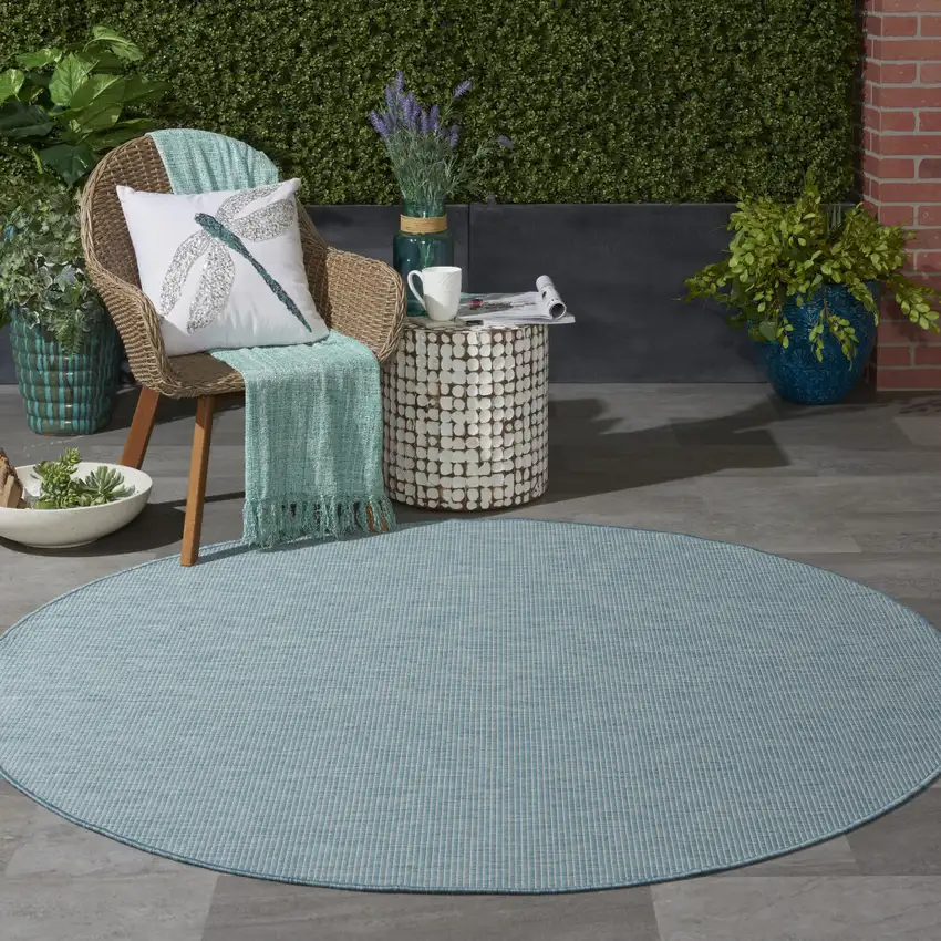 6' Aqua Round Power Loom Area Rug