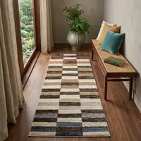 6' Black And Off White Checkered Washable Runner Rug With UV Protection