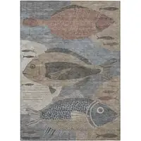 6' Gray And Black Square Medallion Indoor Outdoor Area Rug