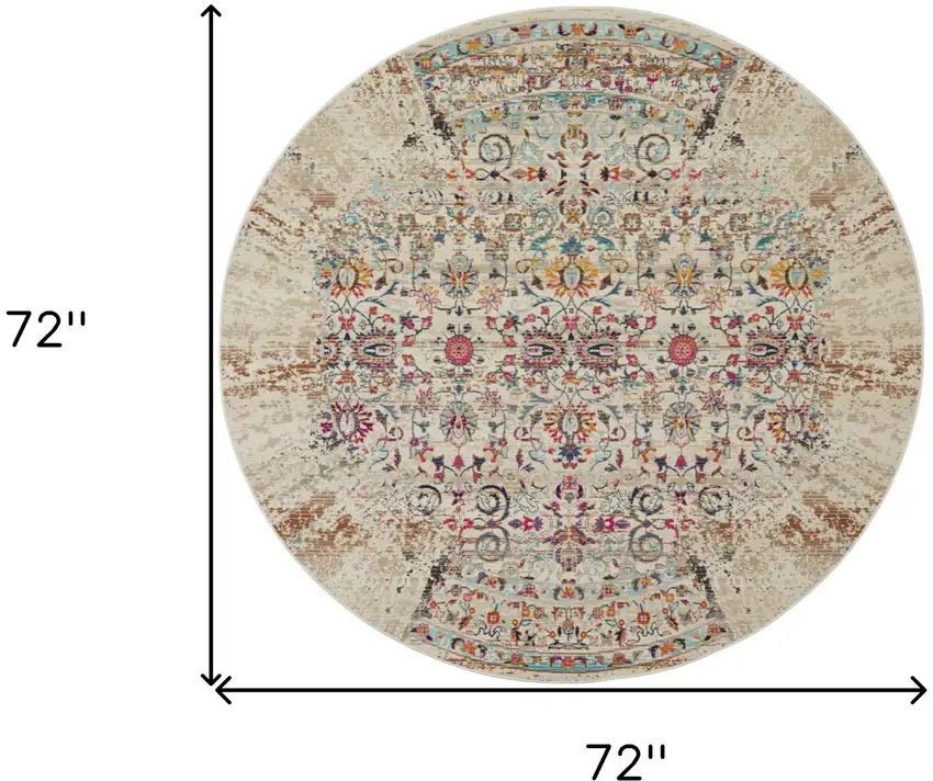 6' Ivory And Brown Floral Distressed Round Rug