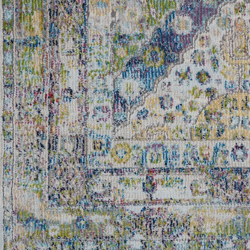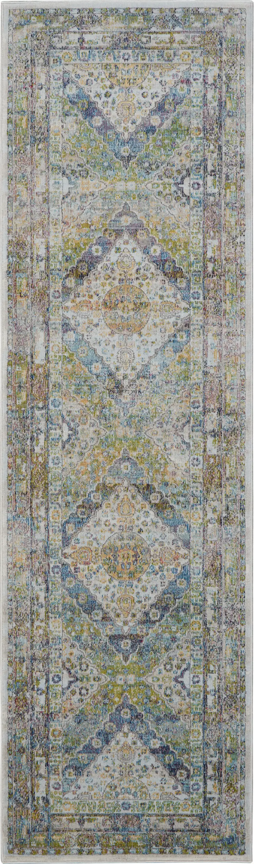 6' Ivory Blue and Green Floral Distressed Non Skid Runner Rug