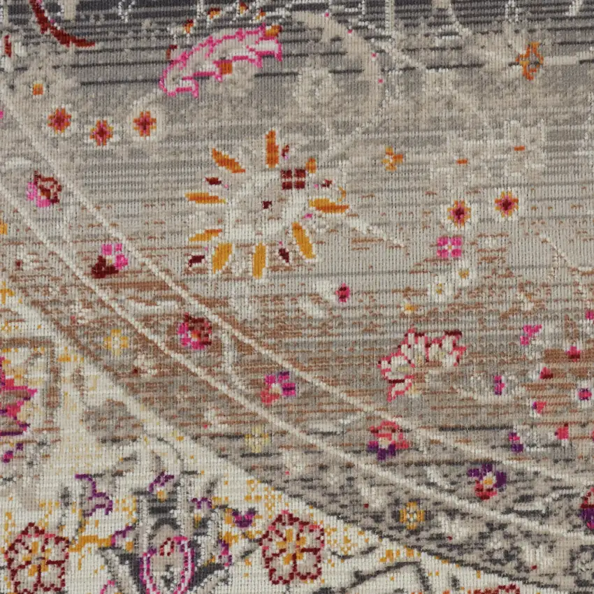 Add great coloration and comfortable texture to your space with this 6-foot ivory brown and gray floral distressed round rug. Ideal for spaces with kids and pets, this rug is stain resistant to help repel dirt and spilled liquids. Built to last, this rug crafted from polypropylene fibers is known for its durability and long lasting appeal. Rugs are a great way to showcase your style, hide imperfections, warm your home and reduce noise. This geometric round shaped rug features a floral pattern in ivory, brown, and gray that combines a good looking print with a unique and updated shape. The mix of shape, color, and design gives this rug refreshing visual interest. This larger sized, transitional styled rug is ready to create a focal point or statement piece in your room. 72-inch h x 72-inch w x 0.5-inch d.