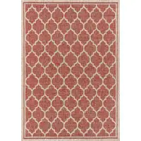 6' Red And Beige Square Geometric Indoor Outdoor Area Rug