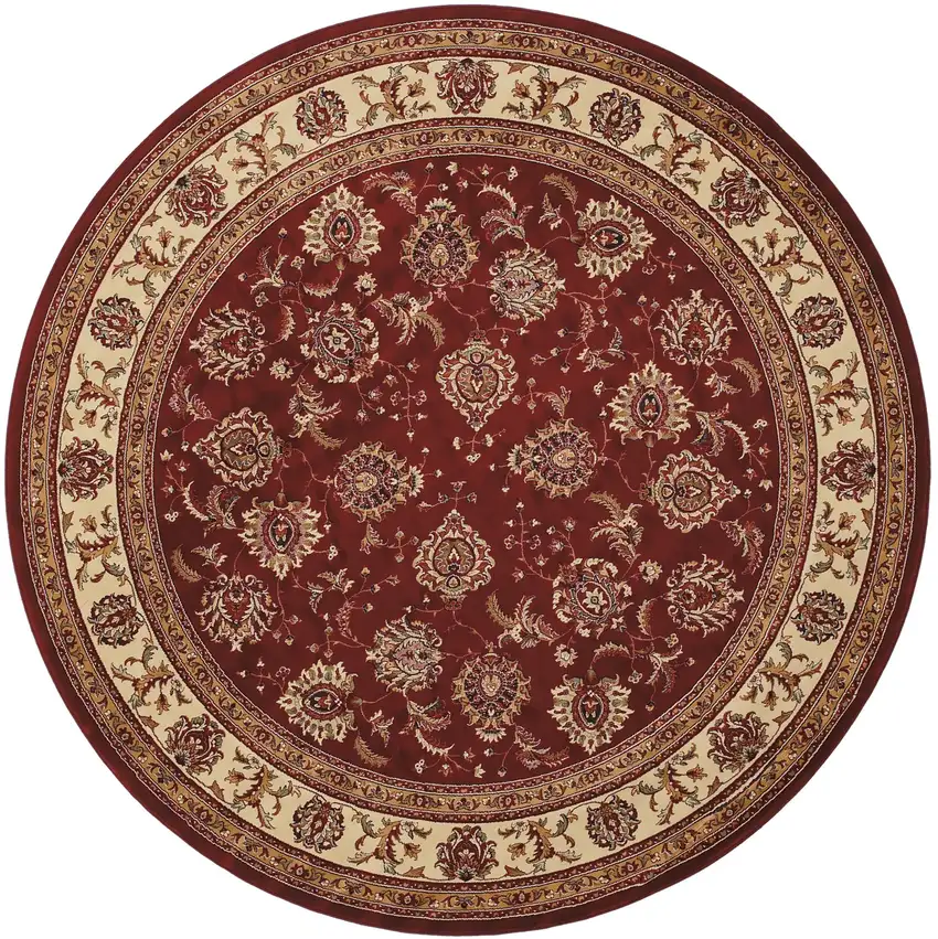 Add some artistry to your room with this 6-foot red and ivory oriental round rug. Ideal for spaces with kids and pets, this rug is stain resistant to help repel dirt and spilled liquids. Built to last, this rug crafted from polypropylene fibers is known for its durability and long lasting appeal. Rugs are a great way to showcase your style, hide imperfections, warm your home and reduce noise. This geometric round shaped rug features a oriental pattern in red and ivory that combines a good looking print with a unique and updated shape. The mix of shape, color, and design gives this rug refreshing visual interest. This larger sized, traditional styled rug is ready to create a focal point or statement piece in your room. 70.87-inch h x 70.87-inch w x 0.43-inch d.