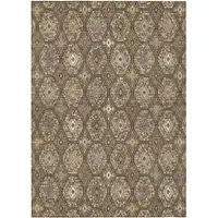 6' Red And Taupe Round Medallion Indoor Outdoor Area Rug