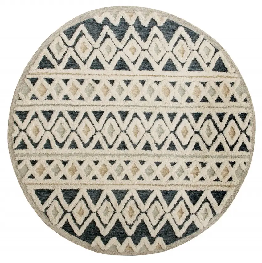 Indulge in the irresistible allure of the 6' Round Blue and Cream Striped Diamonds Area Rug and transform your space into a sanctuary of beauty and comfort. Elevate your home decor to new heights with this stylish and mesmerizing rug that will leave a lasting impression on everyone who steps foot in your space.