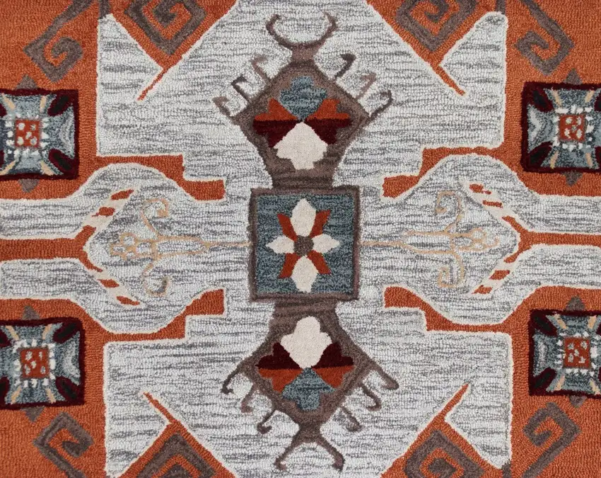 Inspired by traditional tribal patterns, this rug lends itself to a rustic, earthy aesthetic. Its terracotta hues create a warm, inviting atmosphere in any room.