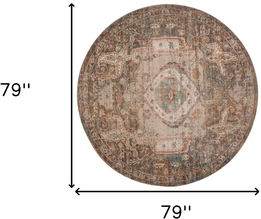 6' Taupe Round Medallion Power Loom Area Rug With Fringe