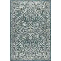 6' Teal Blue And Gray Square Trellis Indoor Outdoor Area Rug
