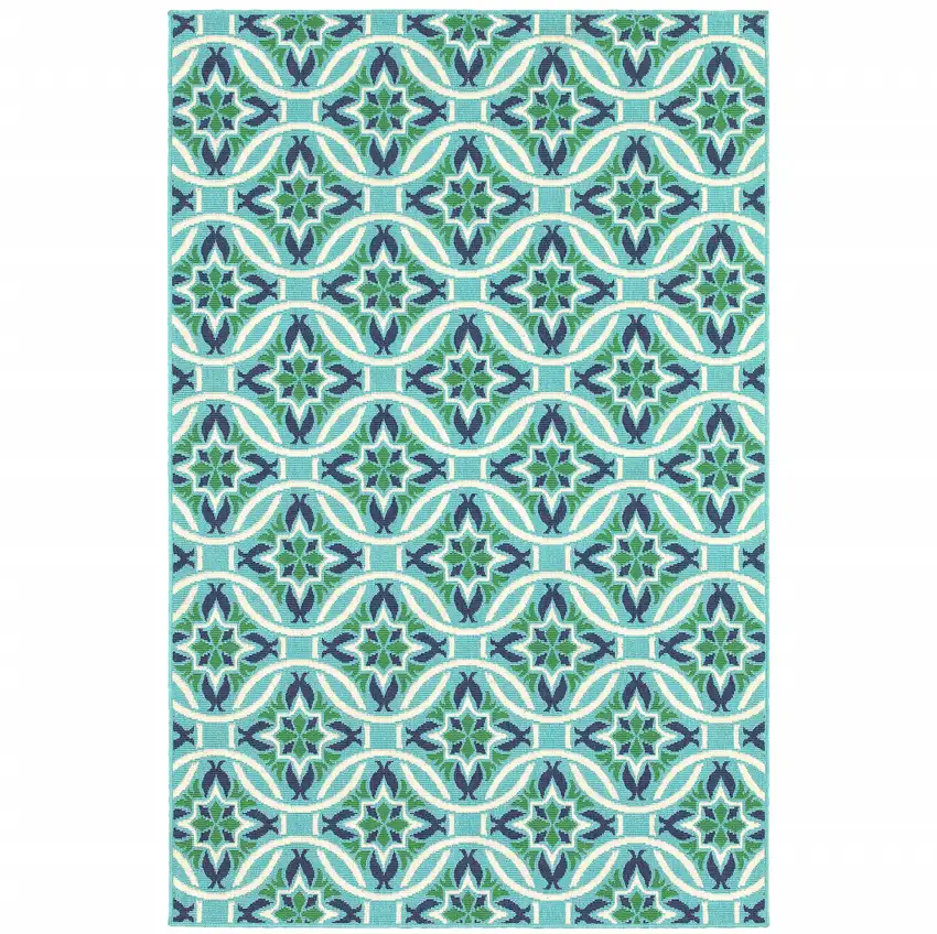 6' X 9' Blue Geometric Stain Resistant Indoor Outdoor Area Rug