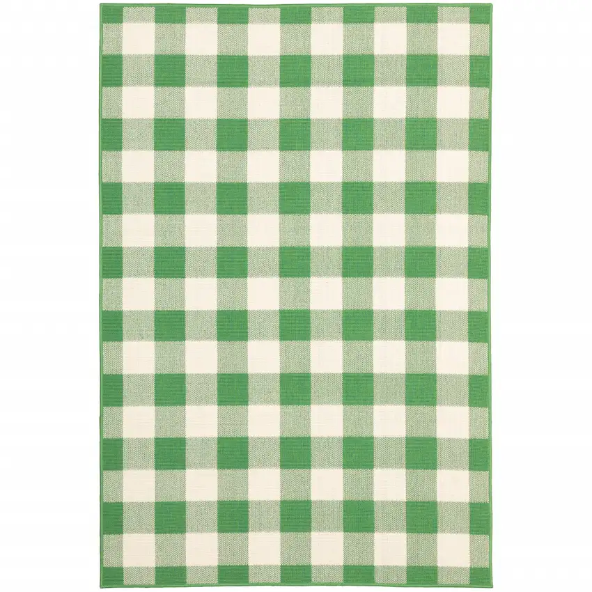 6' X 9' Green Geometric Stain Resistant Indoor Outdoor Area Rug