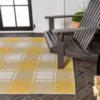 7' Ivory And Cream Square Striped Indoor Outdoor Area Rug
