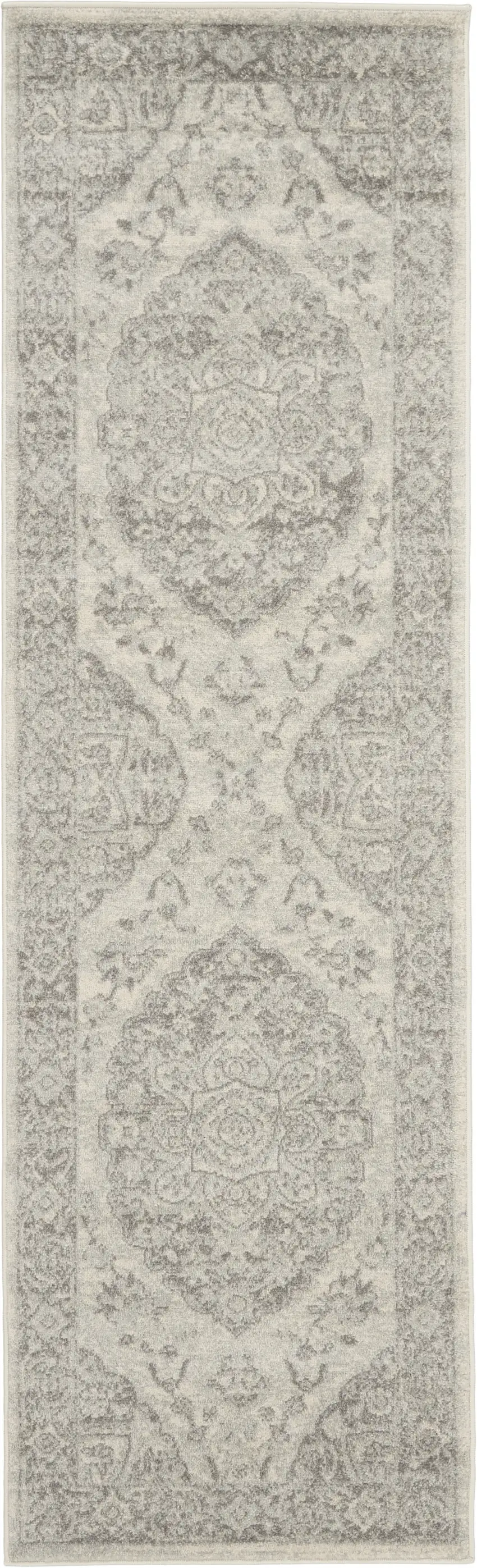 7' Ivory And Gray Floral Medallion Distressed Runner Rug