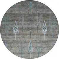 8' Aqua And Gray Round Plaid Washable Indoor Outdoor Area Rug