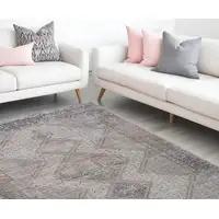 8' Aqua And Ivory Geometric Washable Round Rug With UV Protection