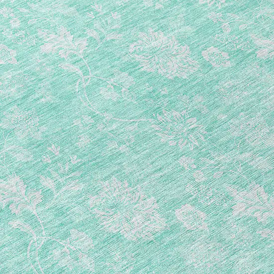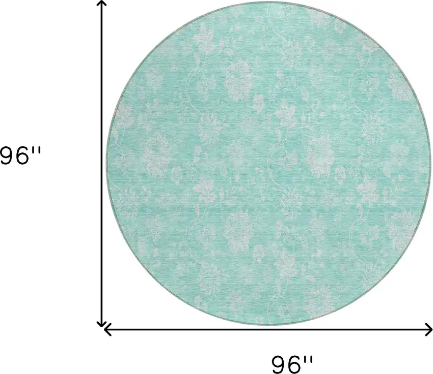 8' Aqua And Ivory Round Floral Washable Indoor Outdoor Area Rug