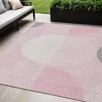 8' Aqua And Ivory Round Geometric Washable Indoor Outdoor Area Rug