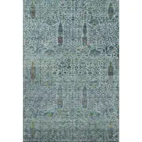 8' Artichoke Green And Gray Striped Washable Round Rug With UV Protection