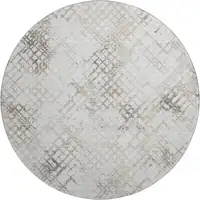 8' Artichoke Green And Gray Striped Washable Round Rug With UV Protection