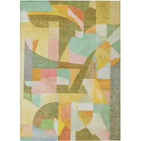 Set an inviting tone in your space with this 8-foot artichoke green and ivory round abstract washable indoor outdoor area rug. This geometric round shaped rug features a abstract pattern in artichoke green and ivory that combines a good looking print with a unique and updated shape. The mix of shape, color, and design gives this rug refreshing visual interest. Ideal for outdoor spaces or high traffic areas with kids and pets, this rug is made from heavy duty polyester that is stain resistant to help repel water, dirt, and stains. Makes a great way to dress up your patio, porch, or poolside, but also works well as a durable and easy to maintain option in the kitchen, family room, or mudroom. 96-inch h x 96-inch w x 0.19-inch d.