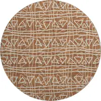This 8-foot artichoke green gray and ivory geometric washable round rug with uv protection, is a great way to add warmth to a room. Ideal for spaces with kids and pets, this rug is stain resistant to help repel dirt and spilled liquids. Built to last, this rug crafted from polyester fibers is known for its durability and long lasting appeal. Rugs are a great way to showcase your style, hide imperfections, warm your home and reduce noise. This larger sized, transitional styled rug is ready to create a focal point or statement piece in your room. 96.00-inch h x 96.00-inch w x 0.39-inch d.